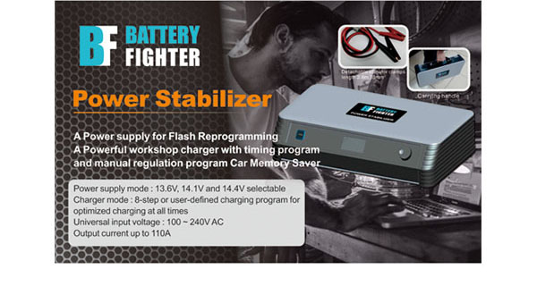 The PST-110A is both a power supply for flash reprogramming and a powerful workshop charger with intelligent 8-step or user -defined charging program for optimized charging at all times